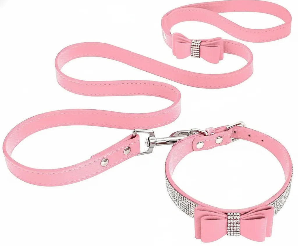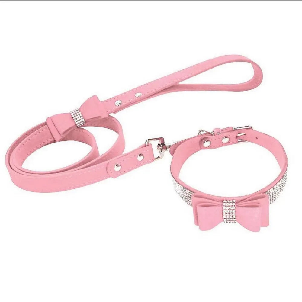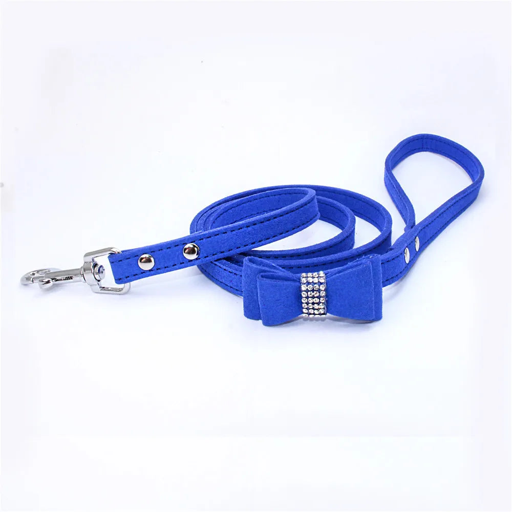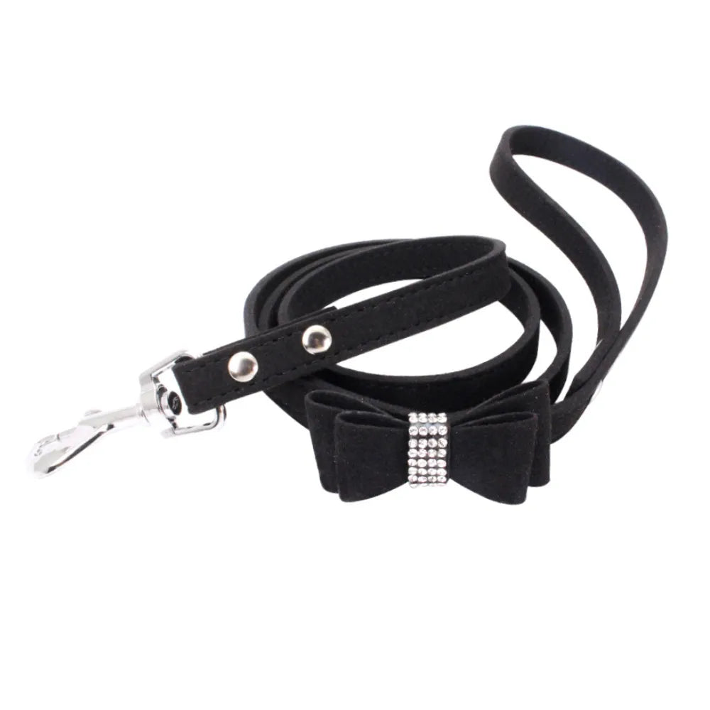 Pet Dog Velvet Leather Collar Leash With Rhinestone Bling Blink Butterfly Fashion Pet Leash Accessories Blind Drop Shipping