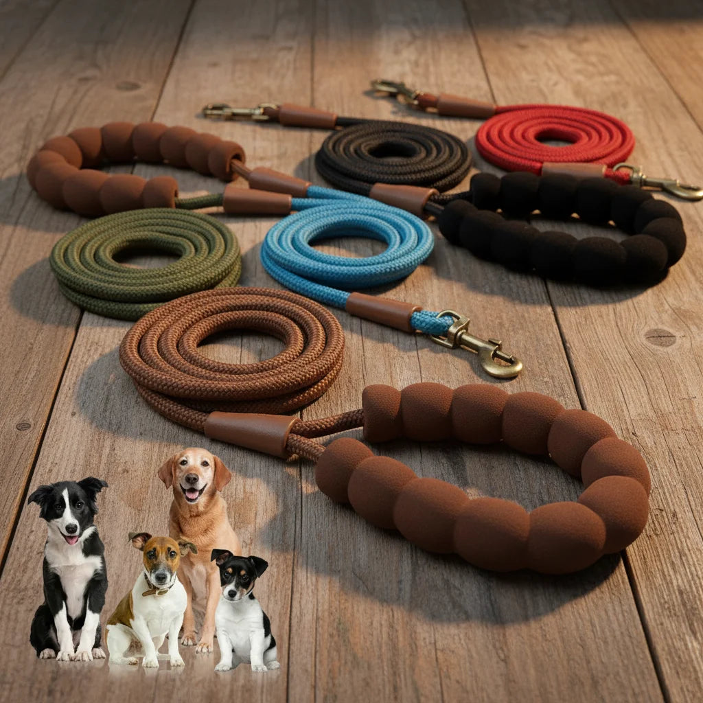 LL039--pet dog leash, 1.5-meter high density rope, soft handle, alloy buckle.