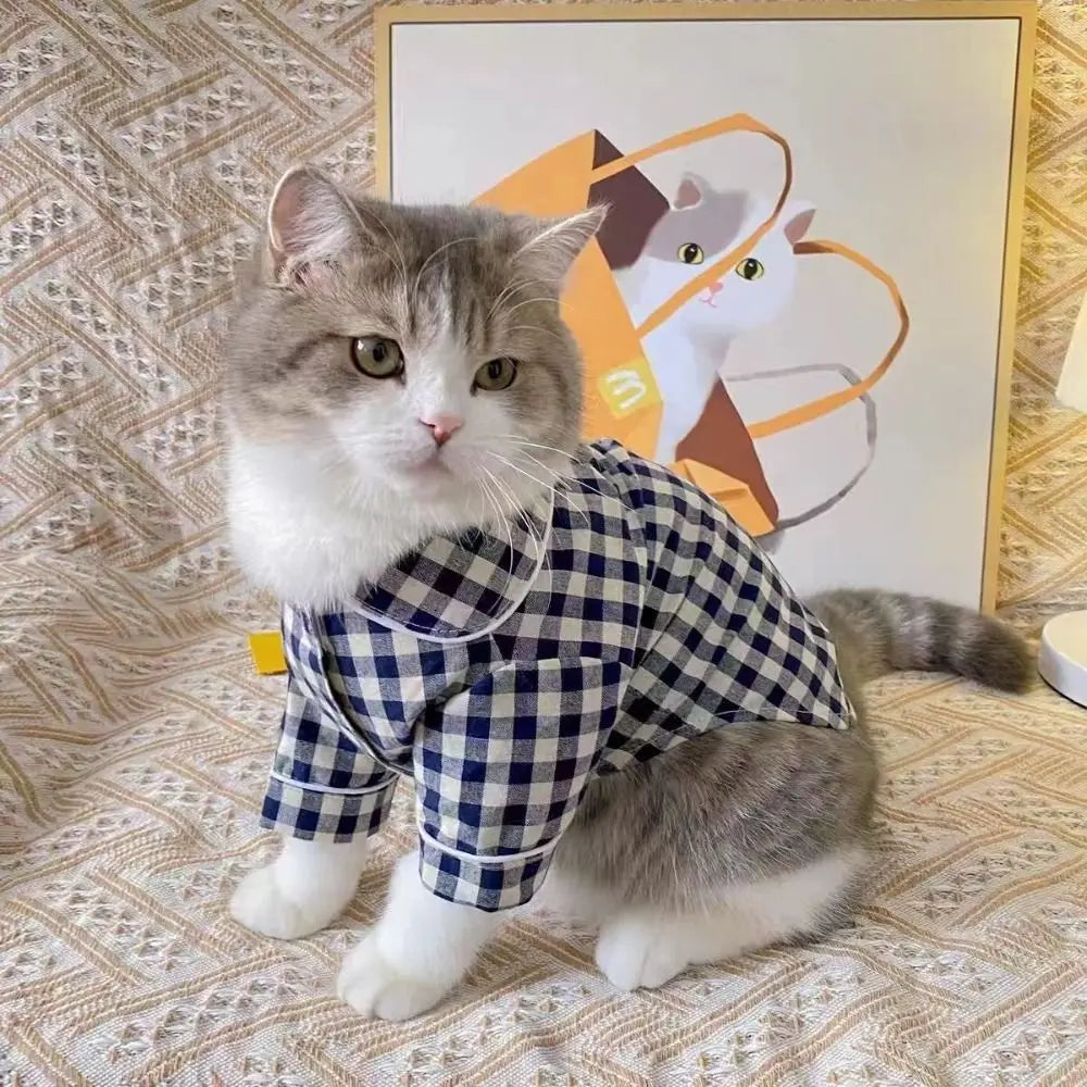 Pet Accessories Leisure Pet Sleepwear Plaid Cotton Breathable Dog Pajamas Comfortable Pet Clothes For Puppy Cat Spring Summer