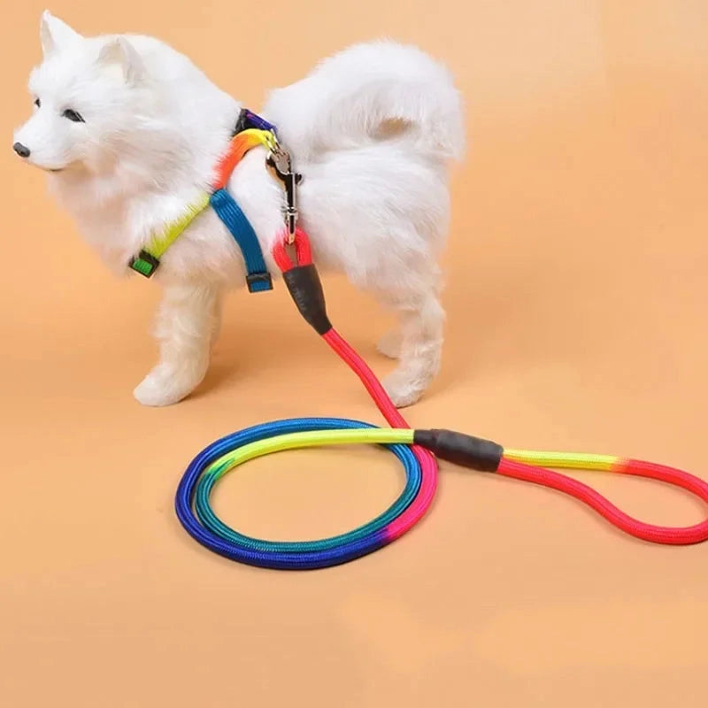 1.2M Pet Dog Leash, Walking Training Leash, Cats Dogs Harness Collar, Leashes Strap Belt Rope, Durable Nylon Rainbow