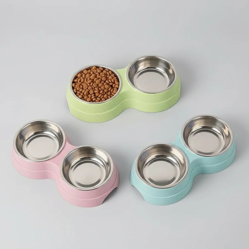 Double Pet Bowls Dog Food Water Feeder Stainless Steel Pet Drinking Dish Feeder Cat Puppy Feeding Supplies Small Dog Accessories